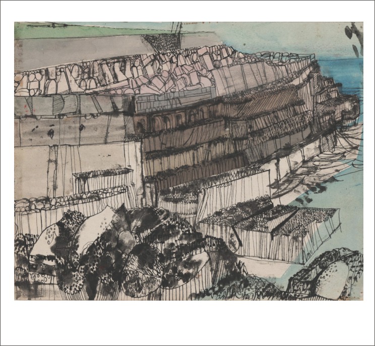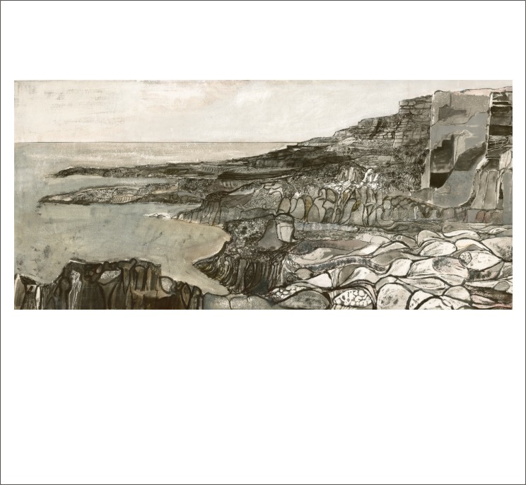 | Early Welsh John’s parents moved to Port Talbot in 1947 his father running a leather shop on Station Road. His mother was welsh and they settled in Sunny Bank Bridgend. It was this first experience on the Glamorgan coast that was to be so influencial in the work John would do in his lifetime. John was metioned in David Bells book ‘Artist in Wales’ 1952 – with an illustration included – ‘Rock Scene Porthcawl’ |